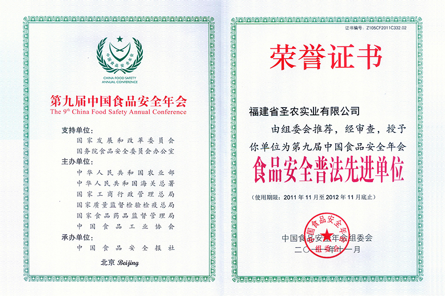 2021(圣農(nóng)集團(tuán))中國(guó)肉類(lèi)食品行業(yè)先進(jìn)企業(yè)