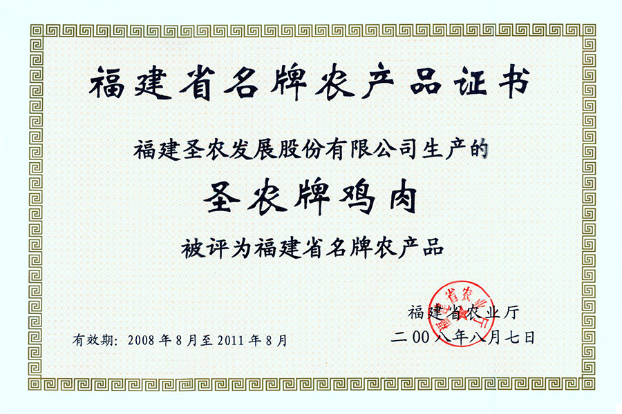 2008年福建省名牌家產(chǎn)品證書(shū)
