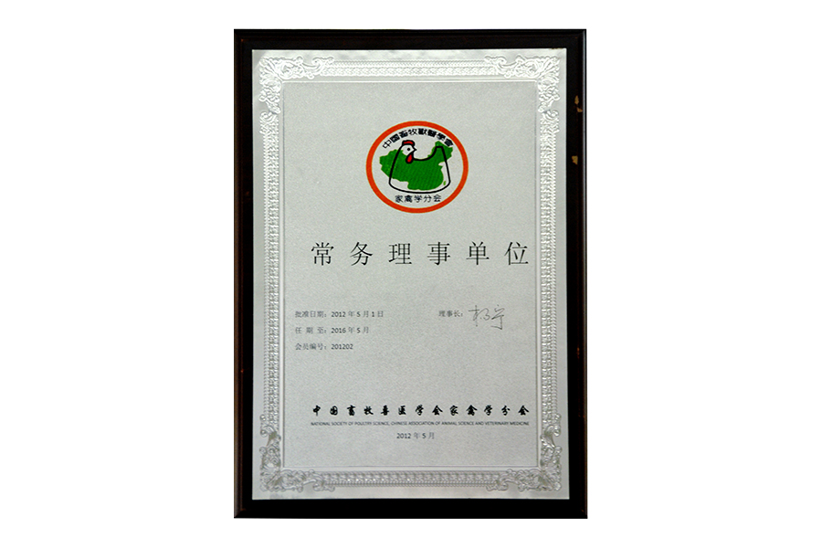 2012年中國(guó)畜牧獸醫(yī)學(xué)會(huì)家禽學(xué)分會(huì)常務(wù)理事單位