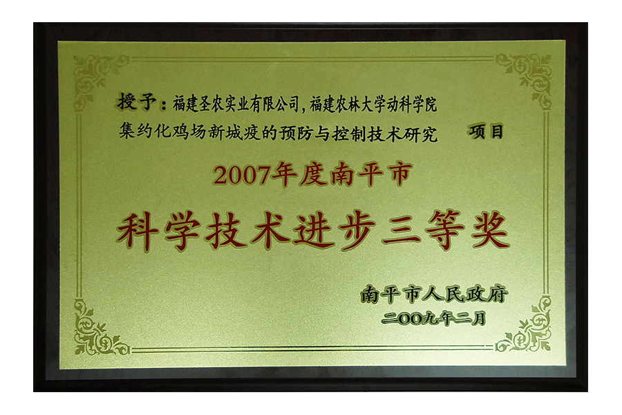 2007年度南平市科學(xué)技術(shù)進(jìn)步三等獎(jiǎng)
