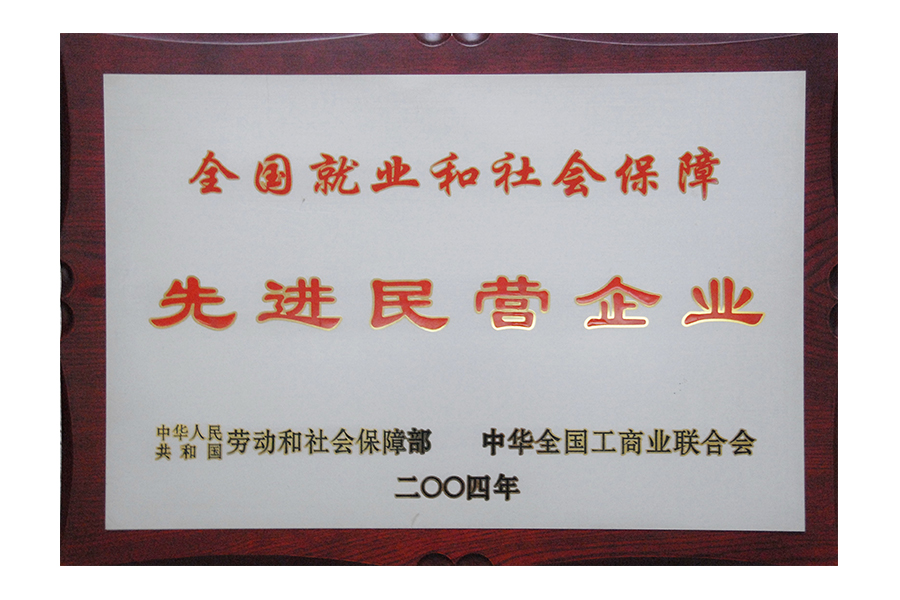 2004年全國(guó)就業(yè)和社會(huì)保障先進(jìn)民營(yíng)企業(yè)