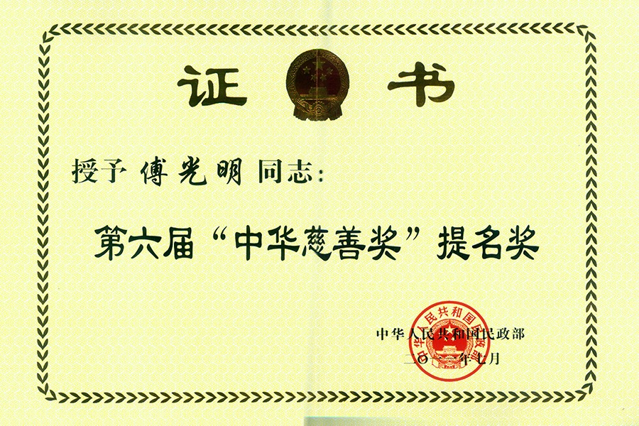 2011年傅光明獲第六屆“中華慈善獎(jiǎng)”提名獎(jiǎng)