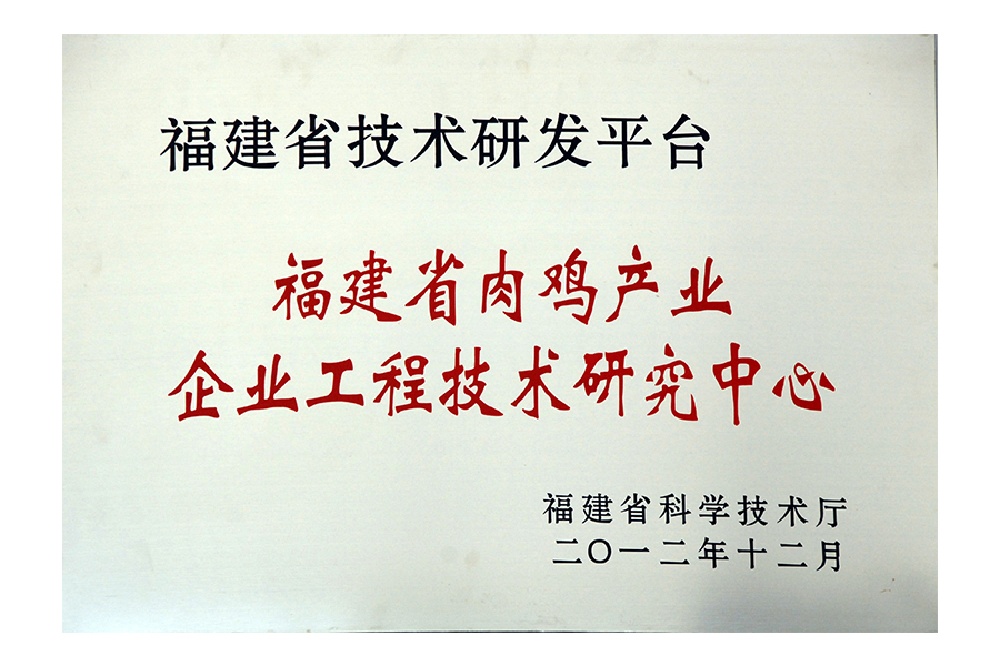 2012年福建省肉雞產(chǎn)業(yè)企業(yè)工程技術(shù)研究中心