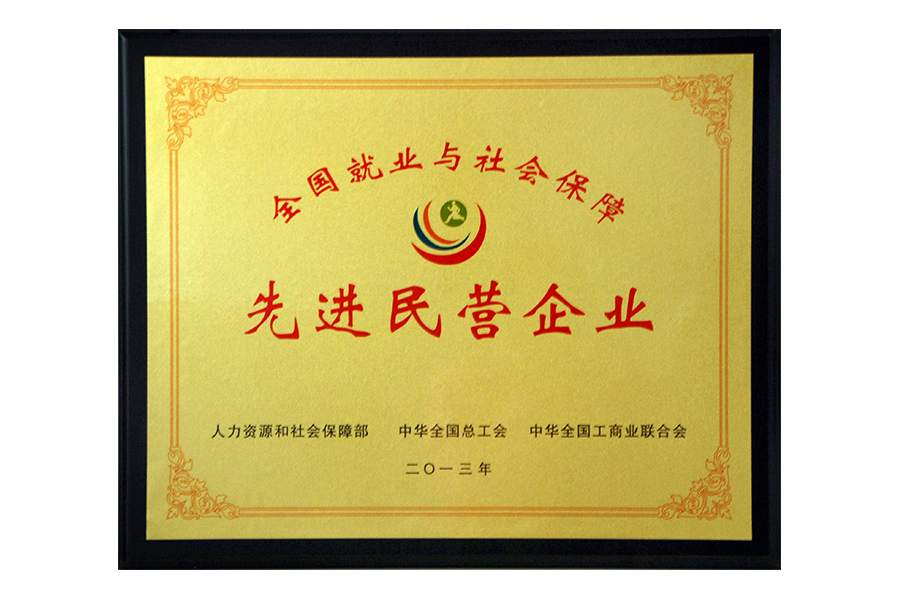 2013年全國(guó)就業(yè)與社會(huì)保障先進(jìn)民營(yíng)企業(yè)牌匾