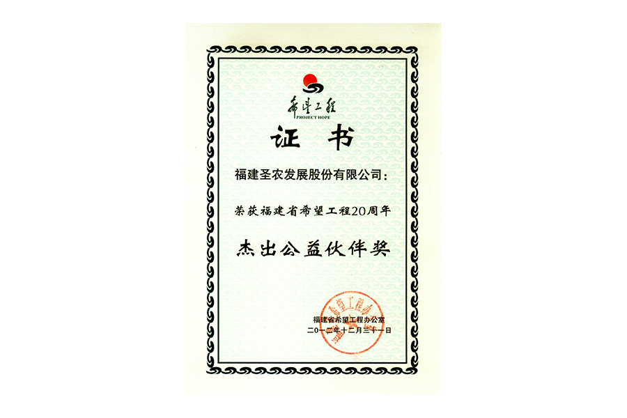 2012年福建省希望工程20周年杰出公益伙伴獎(jiǎng)