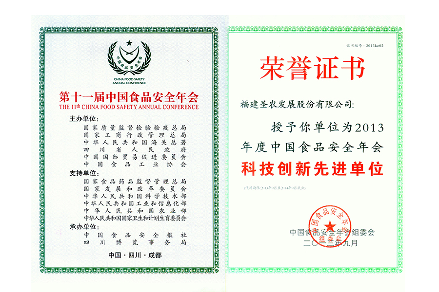 2013年度中國(guó)食品安全年會(huì)科技創(chuàng)新先進(jìn)單位