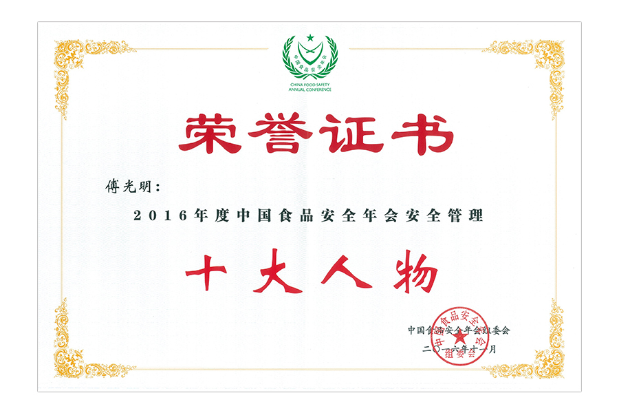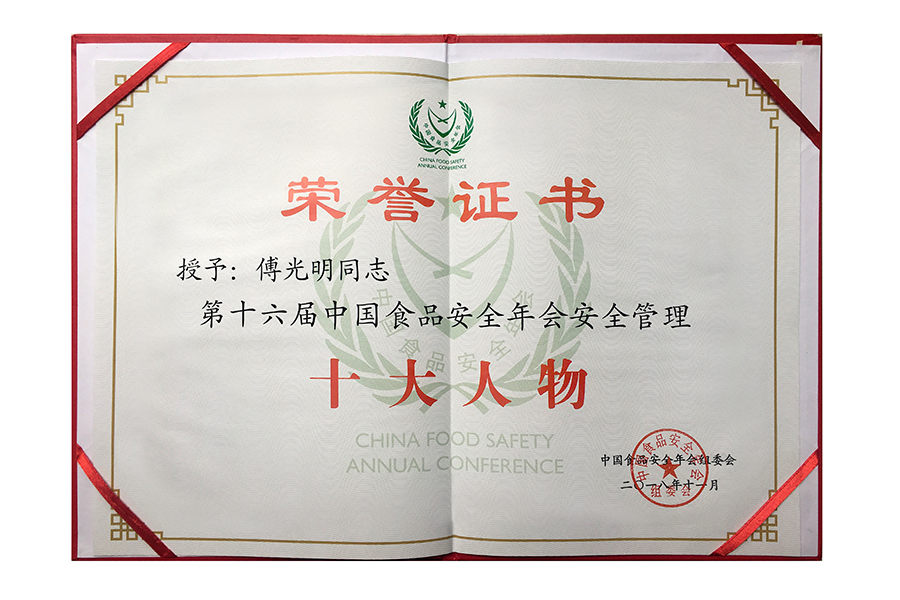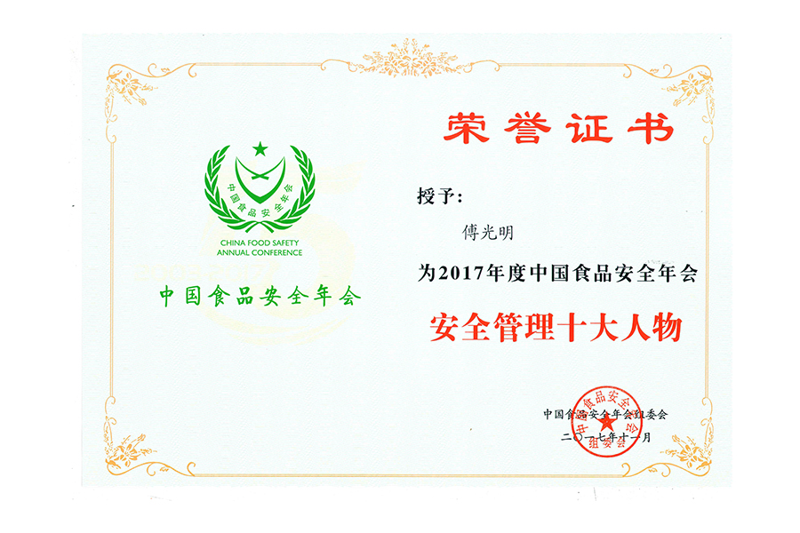 2017年(傅光明)中國(guó)食品安全年會(huì)安全管理十大人物