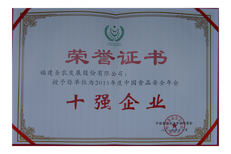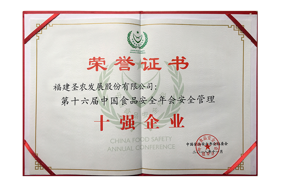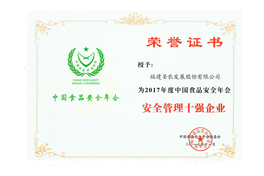 2017年中國(guó)食品安全年會(huì).安全管理十強(qiáng)企業(yè).證書(shū)