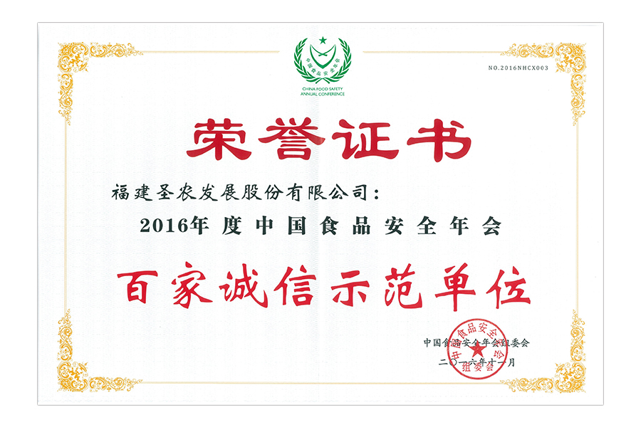 2016年中國(guó)食品安全年會(huì)百家誠(chéng)信示范單位