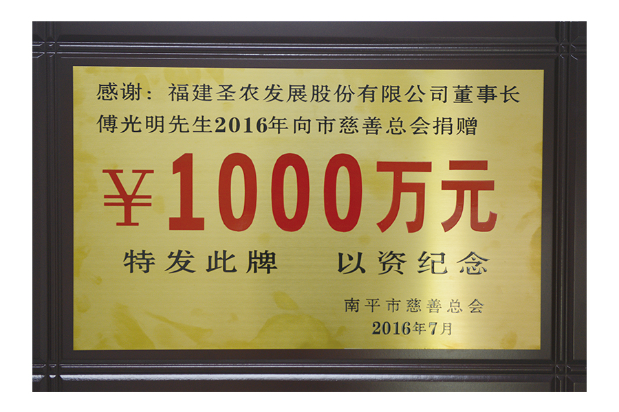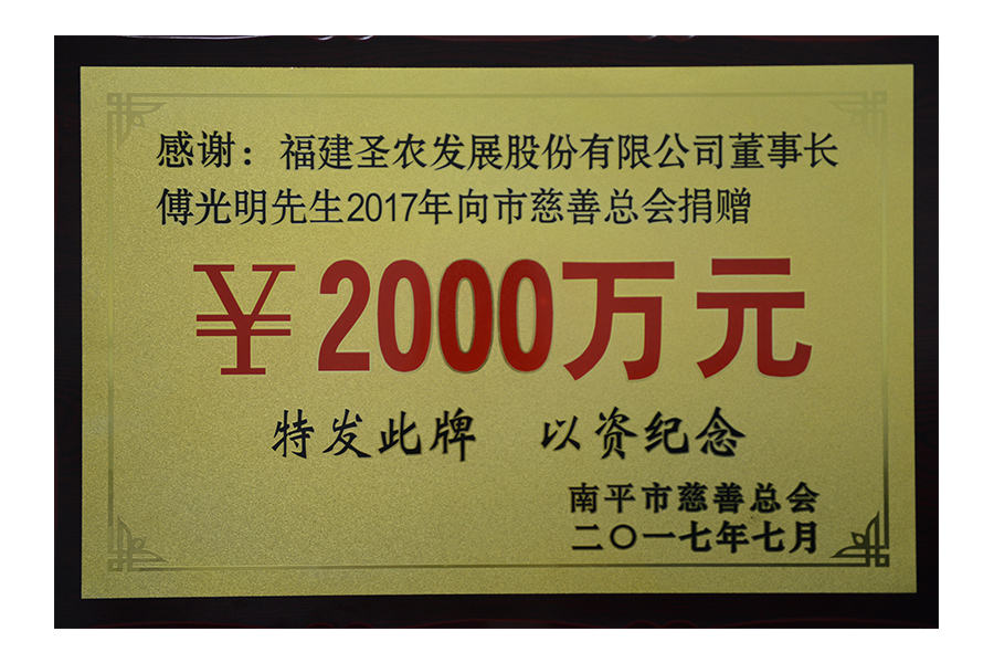 2017年(傅光明)向南平市慈善總會(huì)捐贈(zèng)兩千萬(wàn)