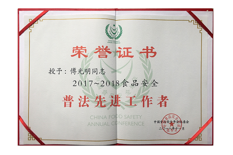 2018食安普法先進(jìn)工作者證書(shū)