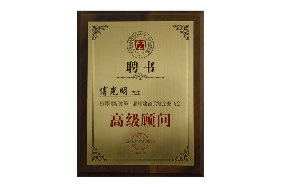 2017年(傅光明)第二屆福建省民營(yíng)企業(yè)商會(huì)高級(jí)顧問(wèn)