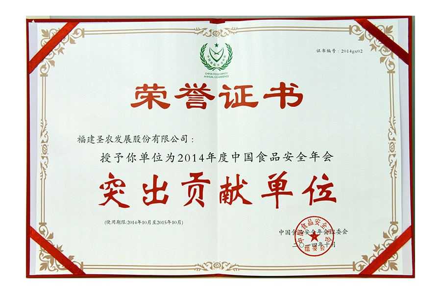 2014年突出貢獻(xiàn)單位證書(shū)