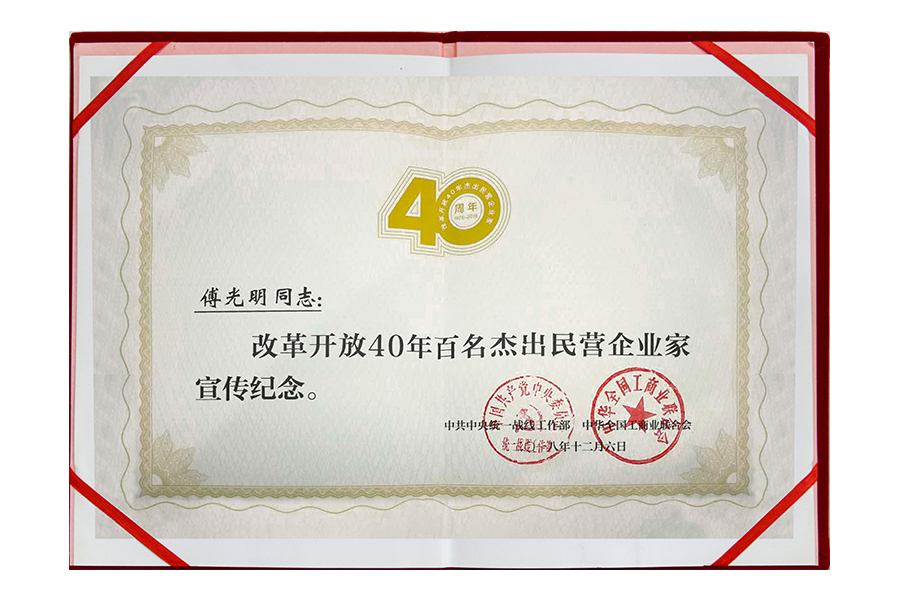 2018年傅光明改革開(kāi)放40年百名杰出民營(yíng)企業(yè)家宣傳紀(jì)念