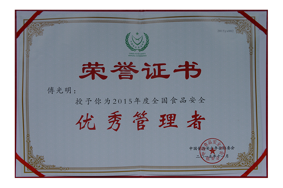 2017年(傅光明)中國(guó)食品安全年會(huì) 安全管理十大人物.證書(shū)
