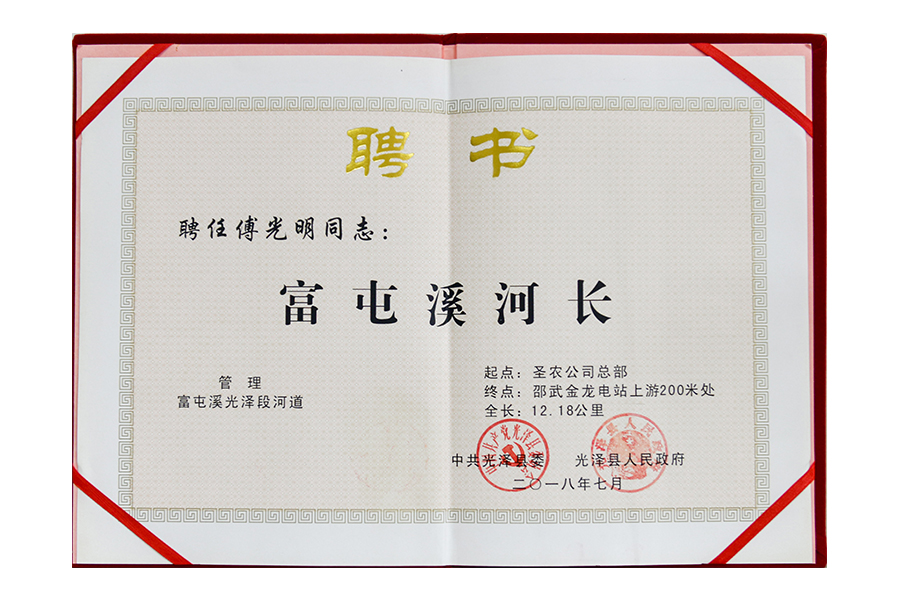 2018年傅光明富屯溪河長(zhǎng)榮譽(yù)證書(shū)
