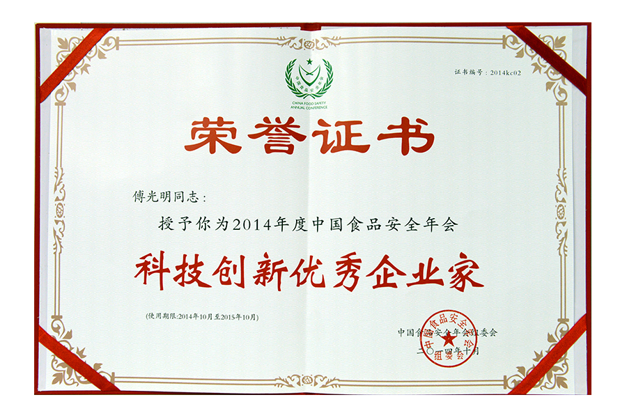 2014(傅光明)科技創(chuàng)新優(yōu)秀企業(yè)家證書(shū)