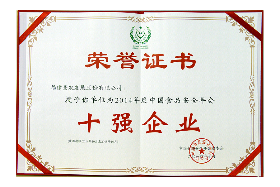 2014年十強(qiáng)企業(yè)證書(shū)