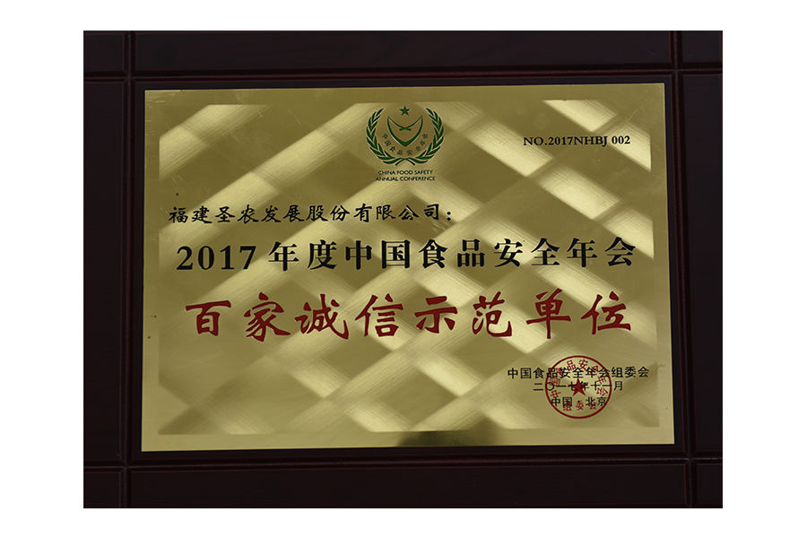 2017年中國(guó)食品安全年會(huì) 百家誠(chéng)信示范單位.牌匾