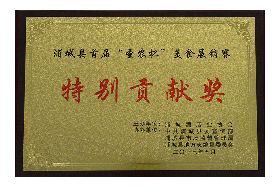 2017年浦城首屆“圣農(nóng)杯”美食展銷(xiāo)賽特別貢獻(xiàn)獎(jiǎng)
