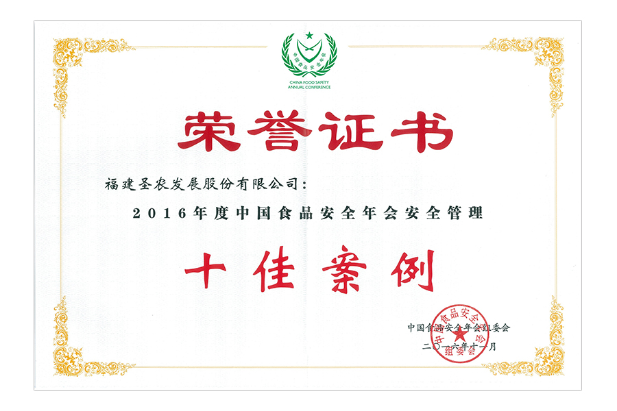 2016年中國(guó)食品安全年會(huì)安全管理十佳案例