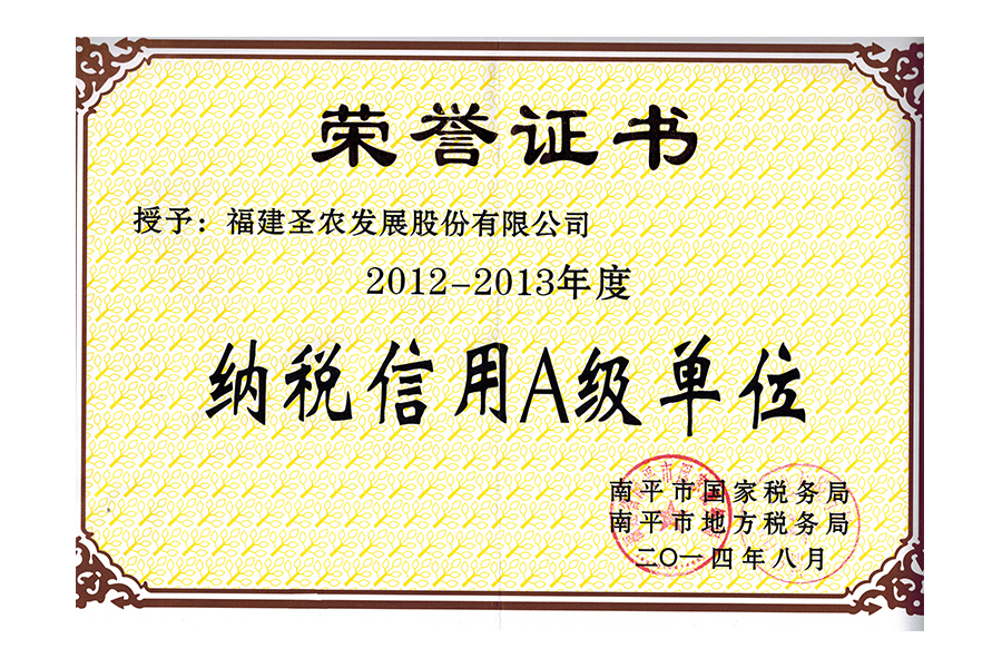 2012-2013年度南平市納稅信用A級(jí)單位