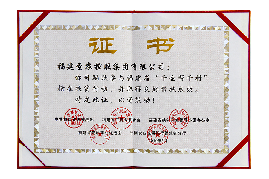2019年福建圣農(nóng)控股集團(tuán)千企幫千村證書(shū)