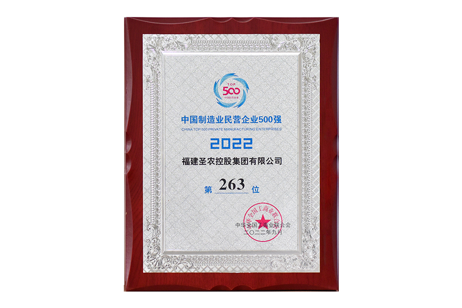 2022年中國(guó)制造業(yè)民營(yíng)企業(yè)500強(qiáng)第263位
