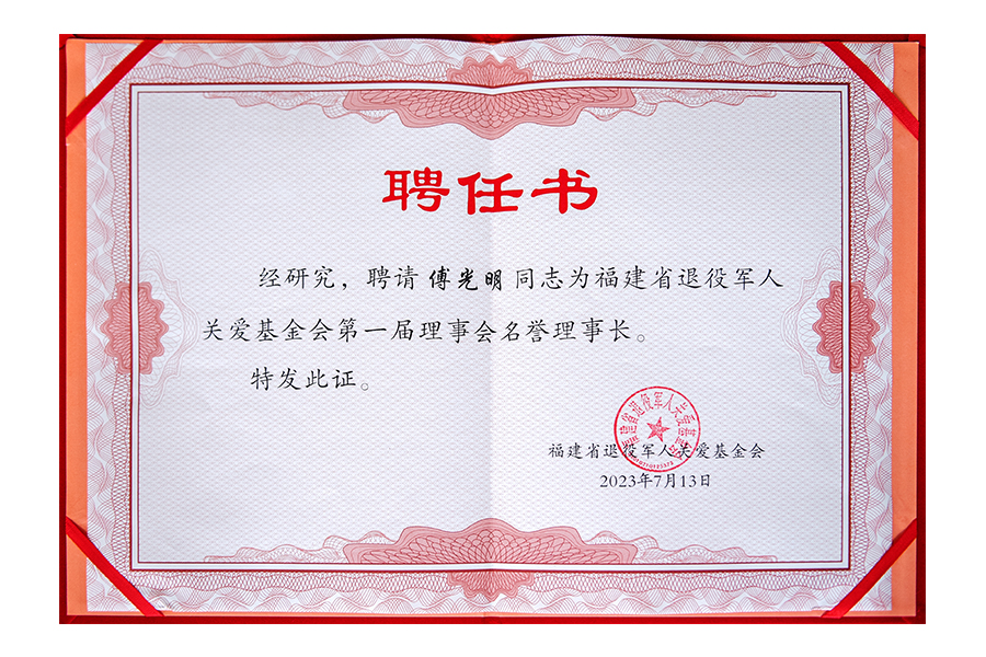 2023年福建省退役軍人關(guān)愛(ài)基金會(huì)第一屆理事會(huì)名譽(yù)理事長(zhǎng)