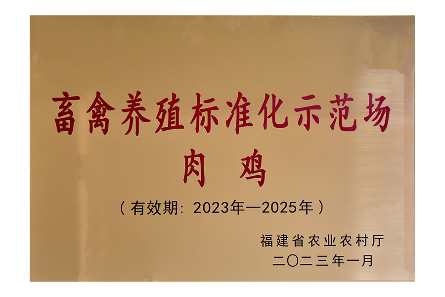 2023年福建農(nóng)業(yè)農(nóng)村廳授予圣農(nóng)發(fā)展(羅家坑肉雞場(chǎng))福建省美麗牧場(chǎng)牌匾