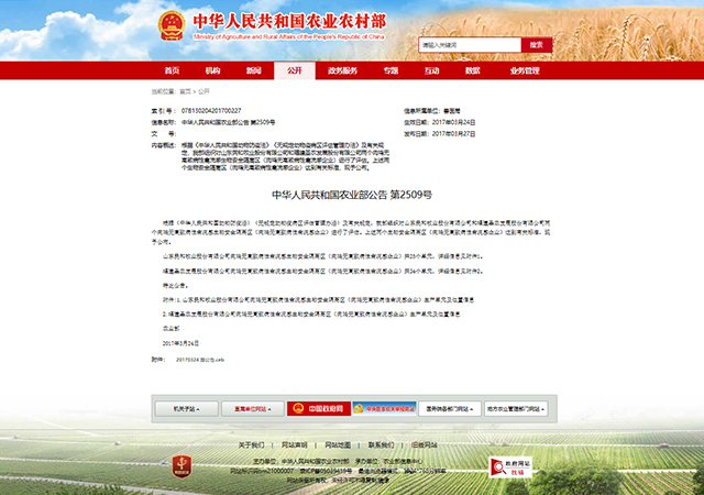 2017年3月24日,中華人民共和國(guó)農(nóng)業(yè)部發(fā)布第2509公告,正式宣布福建圣農(nóng)發(fā)展股份有限公司通過(guò)了共和國(guó)農(nóng)業(yè)部肉雞無(wú)高致病性禽流感隔離區(qū)驗(yàn)收評(píng)估。權(quán)威證實(shí),圣農(nóng)發(fā)展下設(shè)的肉雞無(wú)高致病性禽流感生物安全隔離區(qū)達(dá)到了國(guó)家相關(guān)標(biāo)準(zhǔn)。