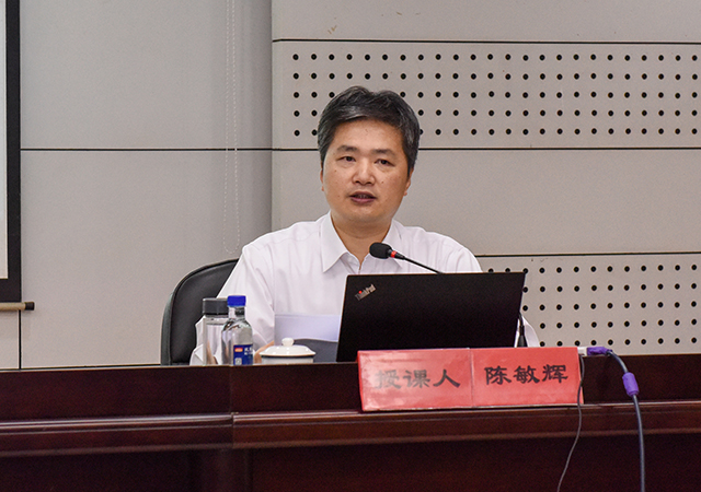 陳敏輝書記從“習(xí)近平新時(shí)代中國特色社會(huì)主義思想的科學(xué)理論體系”、“強(qiáng)化政治擔(dān)當(dāng),把黨的政治建設(shè)擺在首位”和“突出政治功能,努力提升組織能力”等三個(gè)方面,深刻透徹闡釋了習(xí)近平新時(shí)代中國特色社會(huì)主義思想。