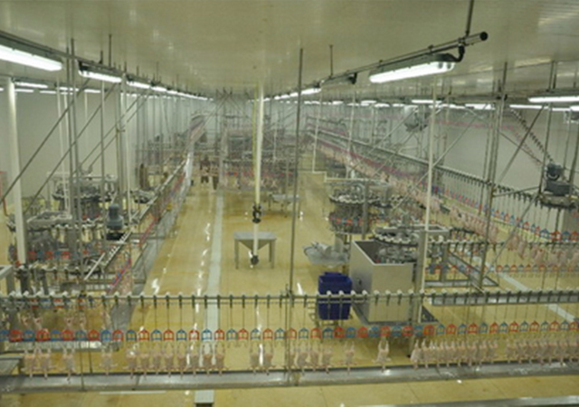 浦城縣系白羽肉雞養(yǎng)殖處女地,浦城縣和圣農(nóng)總部所在地光澤縣同屬武夷腹地,地理生態(tài)環(huán)境與光澤近似,其優(yōu)越的生態(tài)環(huán)境,特別適合規(guī)?;?、標(biāo)準(zhǔn)化、現(xiàn)代化白羽肉雞養(yǎng)殖,投養(yǎng)以來,成活率高達(dá)98.5%,在規(guī)定的飼養(yǎng)期內(nèi)平均體重高達(dá)5.4斤,創(chuàng)造了國內(nèi)乃至世界肉雞養(yǎng)殖水平新高。圣農(nóng)發(fā)展(浦城)有限公司肉雞加工廠從丹麥引進(jìn)的自動(dòng)生產(chǎn)線,除自動(dòng)打毛、自動(dòng)清洗、自動(dòng)掏膛外,還可自動(dòng)分割雞體,取代人工分割,節(jié)約大量勞動(dòng)力。這是目前同行業(yè)可對(duì)雞體進(jìn)行自動(dòng)分割的生產(chǎn)線,自動(dòng)化程度處于世界領(lǐng)先水平。此外自動(dòng)稱重分級(jí)系統(tǒng)還可對(duì)產(chǎn)品進(jìn)行稱重分級(jí),減少誤差,使產(chǎn)品更加規(guī)范標(biāo)準(zhǔn)。