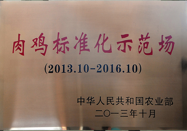 經(jīng)專家驗收評分,圣農(nóng)大青肉雞場以94分的高分,于2013年10月通過驗收,被國家農(nóng)業(yè)部評為“肉雞標準示范場”。2014年6月15日,圣農(nóng)收到農(nóng)業(yè)部頒發(fā)的獎牌。