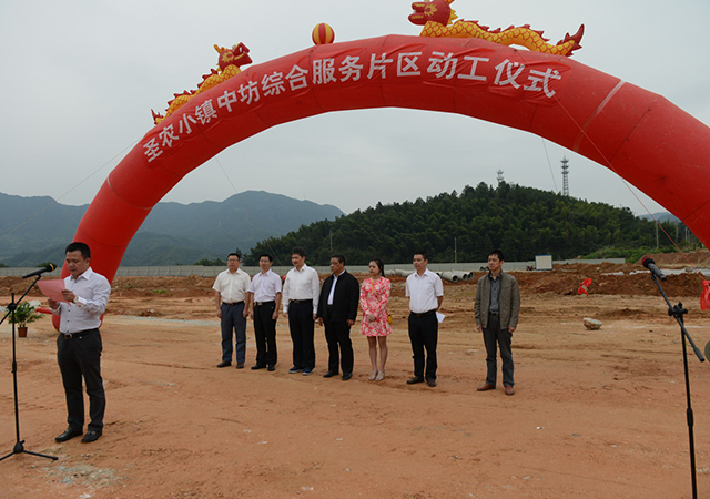 2016年10月10日,圣農(nóng)小鎮(zhèn)中坊綜合服務區(qū)動工儀式在光澤縣中坊村舉行。光澤縣縣委書記陳敏輝、福建圣農(nóng)發(fā)展股份有限公司董事長傅光明、福建華圣房地產(chǎn)開發(fā)有限公司董事長傅露芳、福建圣農(nóng)發(fā)展股份有限公司常務副總裁陳劍華參加了動工儀式。